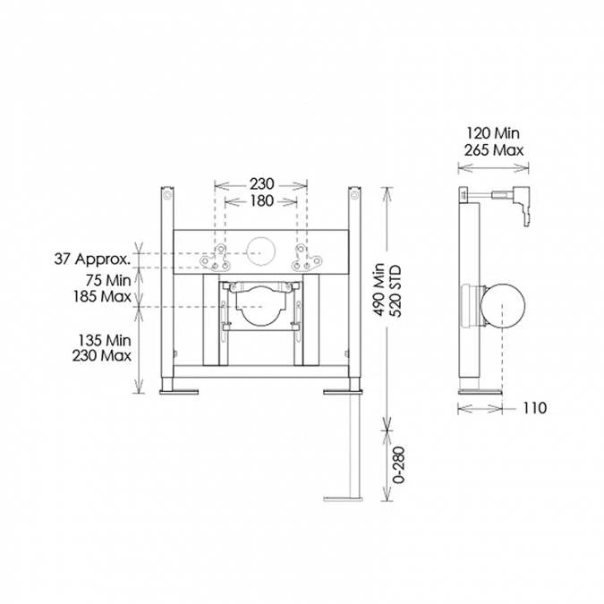 The Abacus Direct Easi-Plan Wall Mounted Low Height Pan Fixing Frame is supplied with full pre-wall installation bolt kit adjustable from 120mm to 265mm