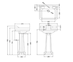 Burlington Classic 65cm Square Basin With Invisible Overflow & Pedestal