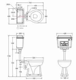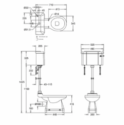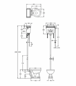 Burlington High Level WC With White Ceramic Cistern And Dual Flush Fittings P2 C5 T30CHR