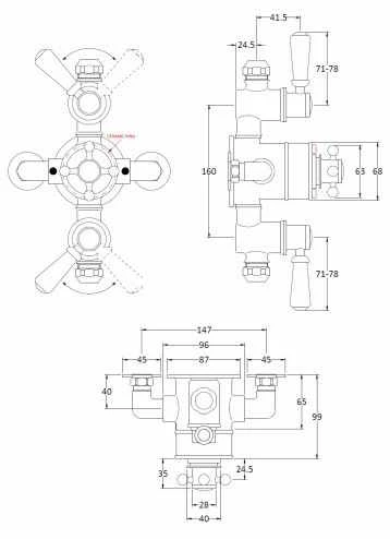 The Bayswater Traditional Valve is fitted with anti-scald technology to prevent scalding in case of a cold or hot water shut off. Triple Shower Valves supply water to 3 oulets, shower heads and/or a bath filler.