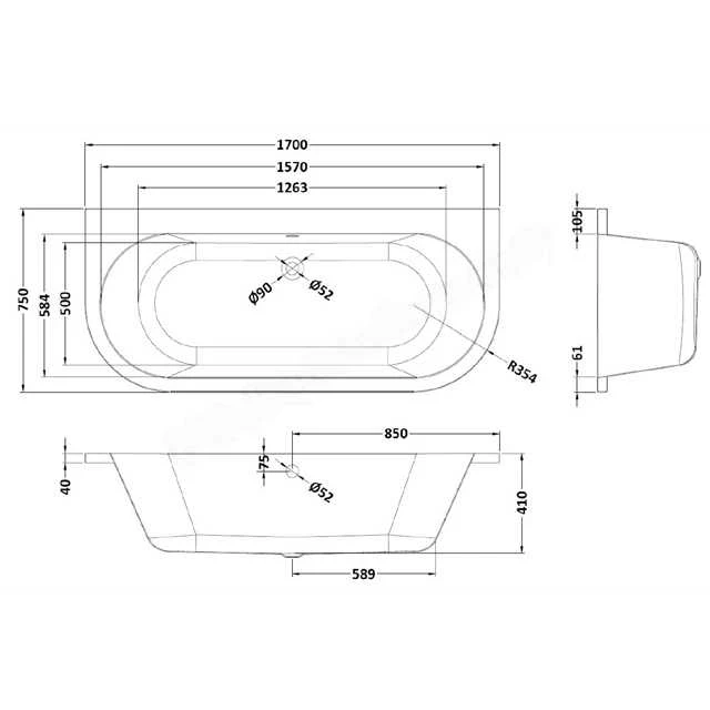 - 1700 x750mm