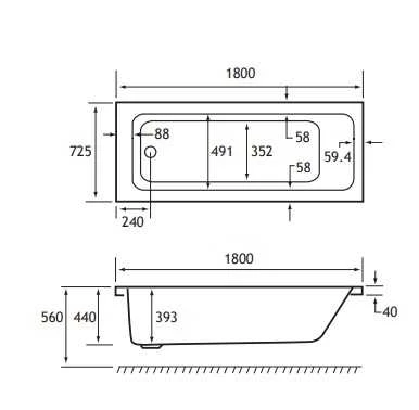 Beaufort Portland 5mm 1800 x 725mm Single Ended Bath.