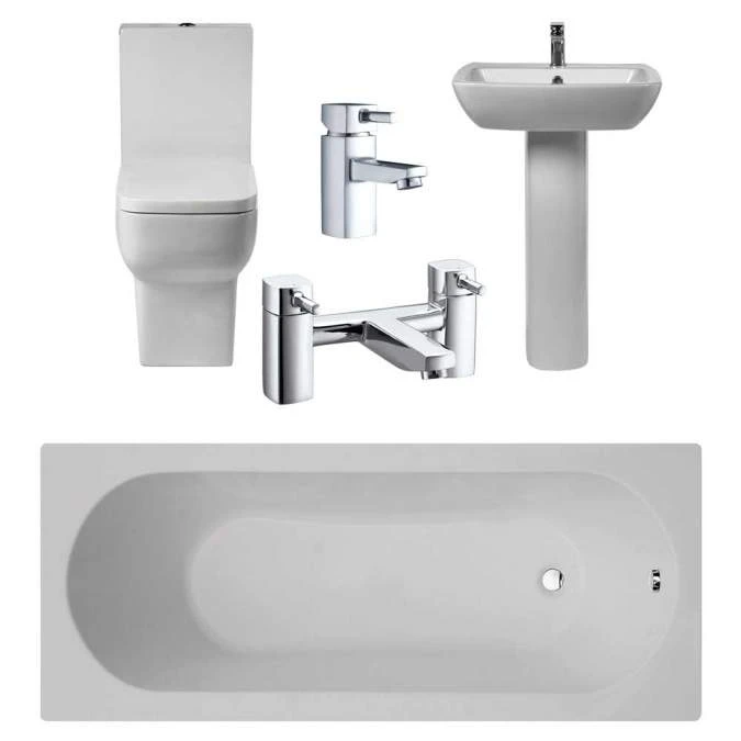 The Bella Suite from Frontline complete with 1700mm bath combines everything you need to create a beautiful bathroom. The single ended bath has the perfect size and shape to be the centrepiece of your family bathroom. This suite comes with a single ended 1700mm bath and front panel to match, toilet with cistern & seat, 550mm sink basin with pedestal, basin taps, bath taps and chrome wastes.