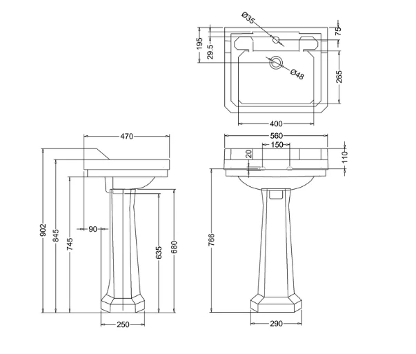 Edwardian 56cm Basin and Regal Pedestal by Burlington