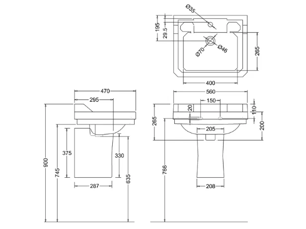 - Basin size: 560 x 470mm