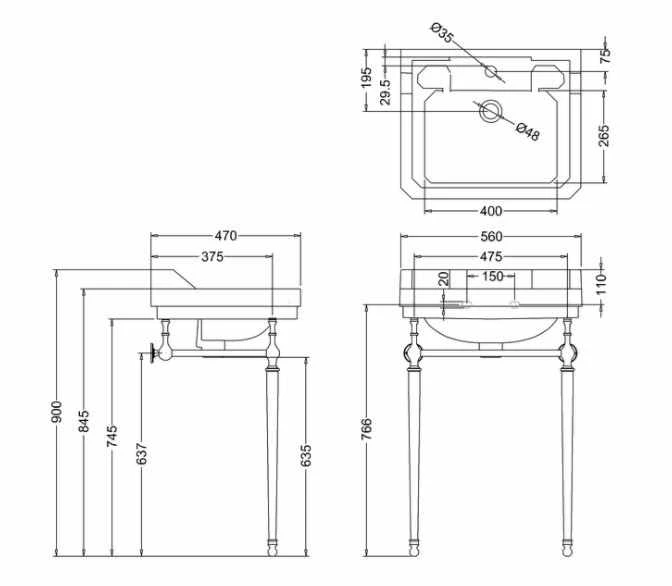 - Basin size: 560 x 470mm