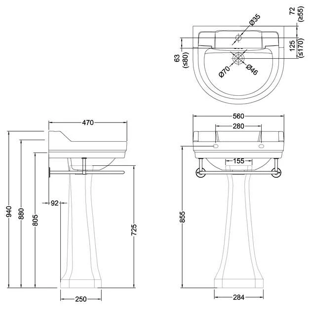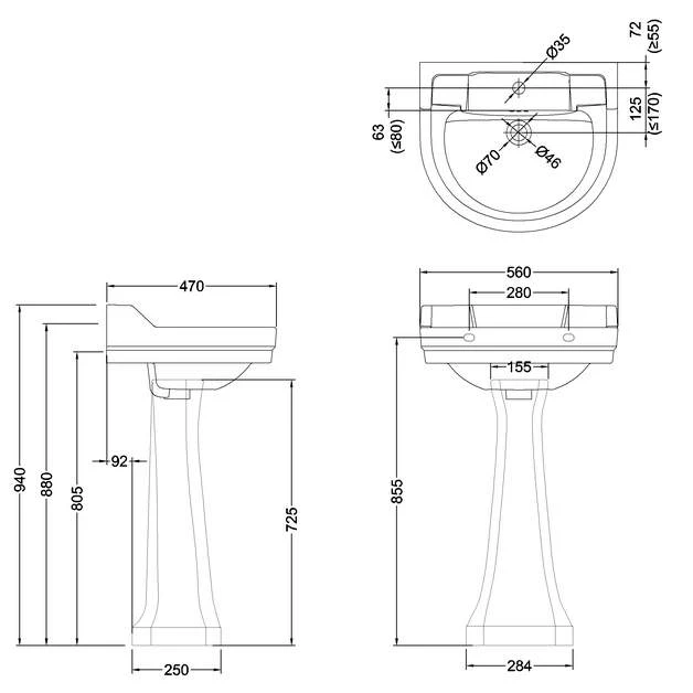 Burlington Edwardian Round 56cm Basin and Regal Pedestal