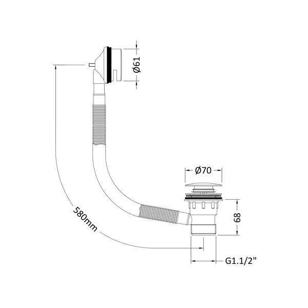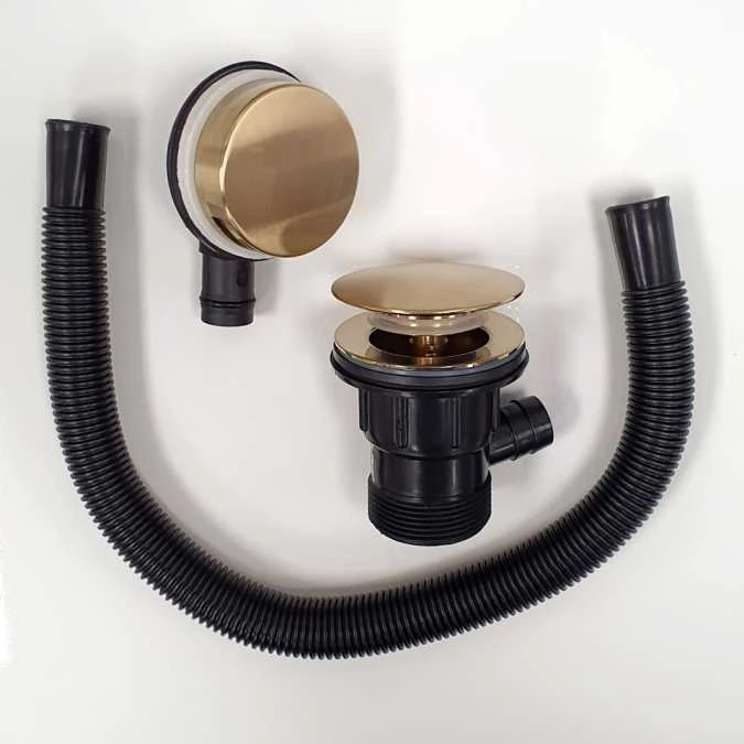 Easy Clean Brushed Brass Effect Bath Spurng Click Clack Waste. This is a high quality modern easy clean Sprung Bath Waste with Overflow, controlled by a simple push the plug and it pop up, push again to close. Brushed Brass finishing touch in your bathroom and provides excellent performance.