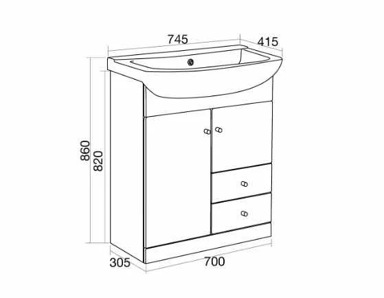 This Vanity Unit comes with 2 Doors and 2 Drawers giving you plenty of space to store your bathroom essentials.