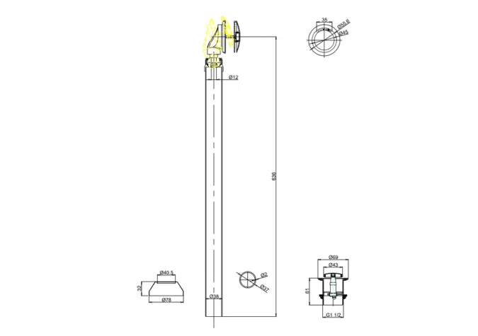 - Maximum height (Floor to centre of overflow): 636mm – Pipe can be cut to lentgh on site