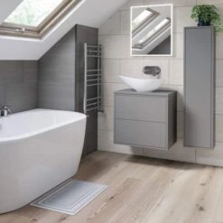 Pomeranian 600mm 2 Drawer Wall Hung Basin Unit Inc. Basin – Matt Grey