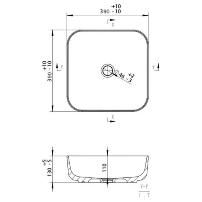 Gressingham matt white square countertop basin specification: