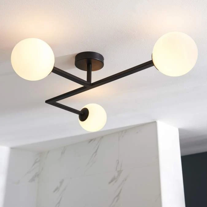 The Gressingham ceiling light in matt black will suit and modern bathroom or ensuite.