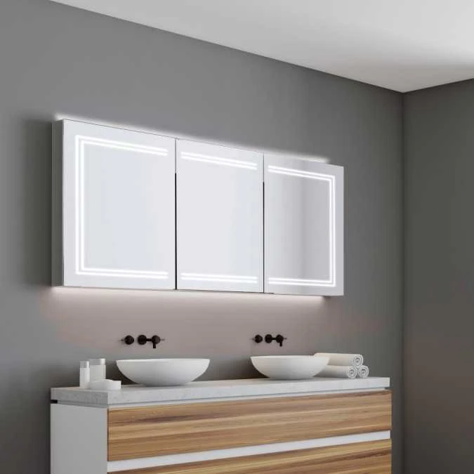 - These cabinets are fitted with a heated pad in the mirrored door, that helps to clear condensation from the central area of the mirrored door.