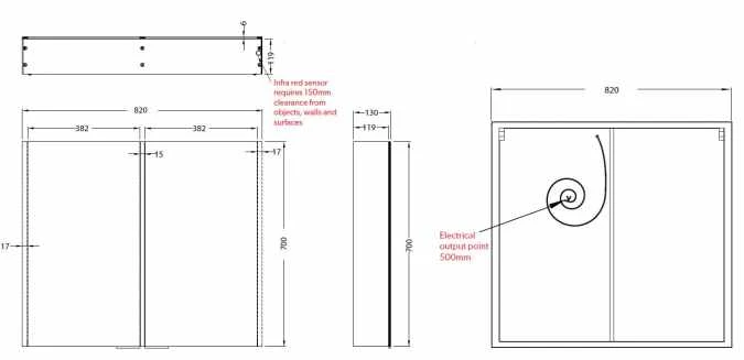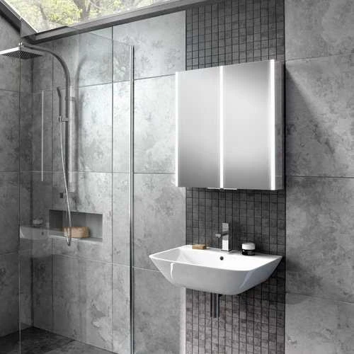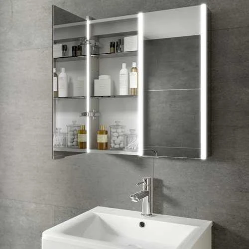 This HIB Xenon 80 LED Aluminium Cabinet is a bathroom cabinet with soft close double sided mirror doors, Charging Socket, Sensor switch operated.
