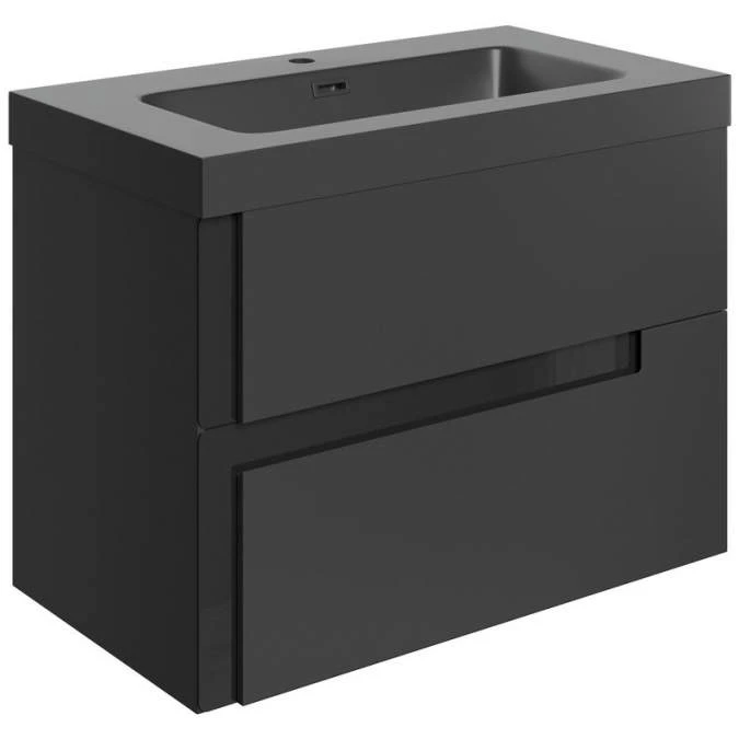 Jux 805mm Wall Hung 2 Drawer Basin Unit & Co-ordinating Basin – Matt Black & Glass