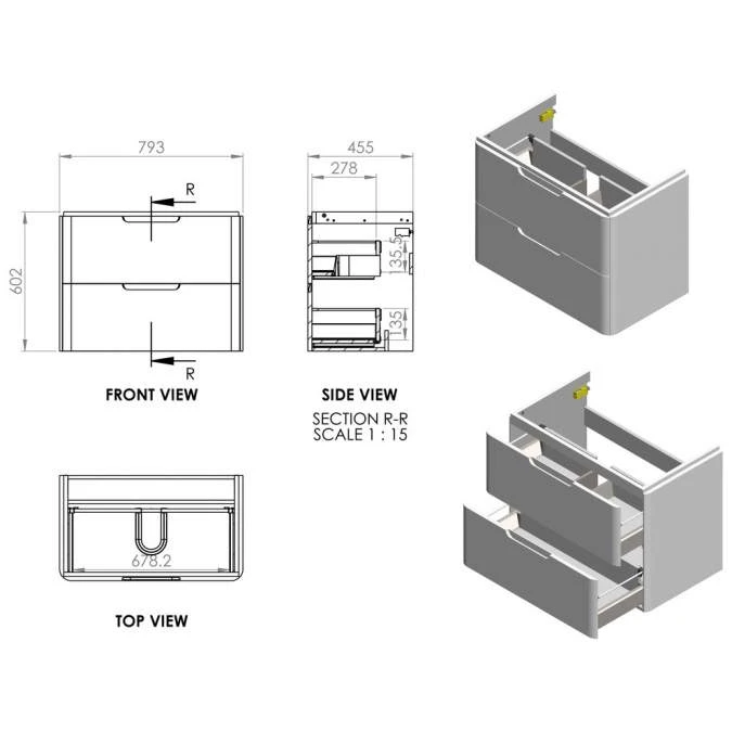 Laplane 800mm Wall Hung 2-Drawer Vanity Unit with Basin in White Gloss