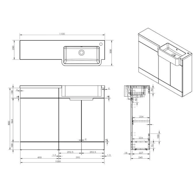 - Combined Unit Width: 1100mm