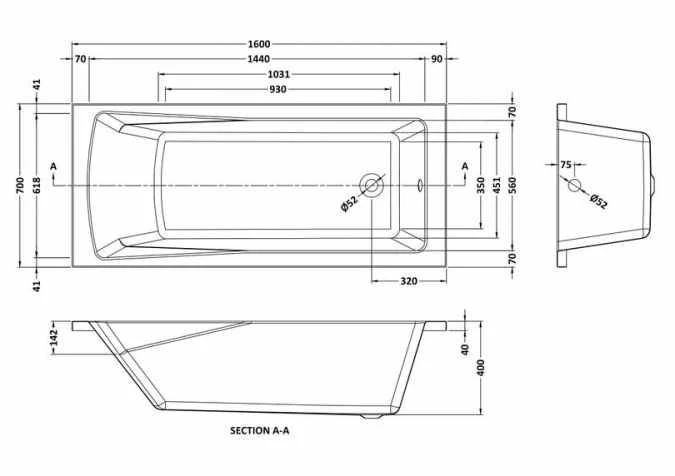 Linton Square Single Ended Bath 1600 x 700 x 420mm