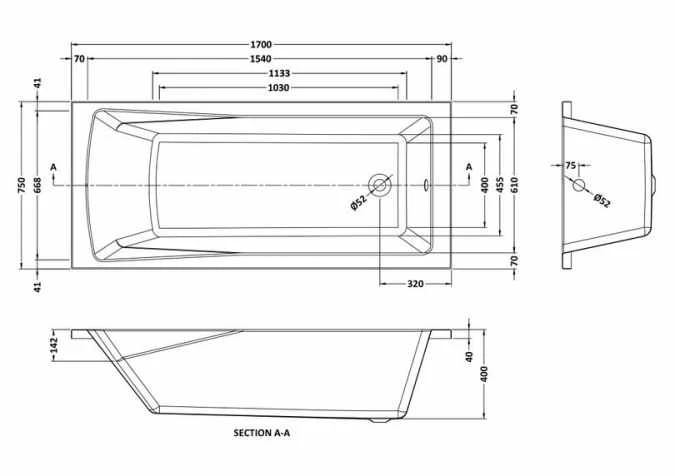 Linton Square Single Ended Bath 1700 x 750 x 420mm