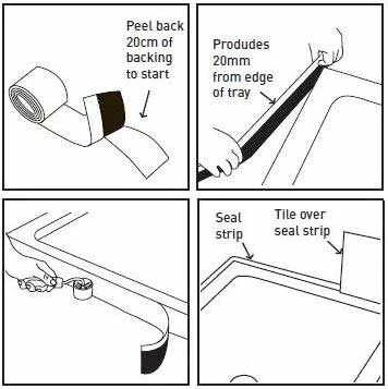 8 Install the shower tray in the correct position and tile over the seal strip.