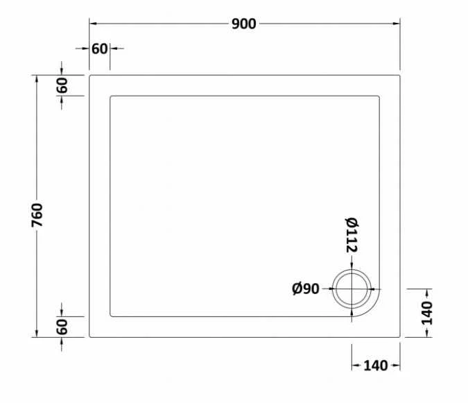 NUIE 900 x 760 Rectangular 40mm Shower Tray – Inc FREE Chrome Waste