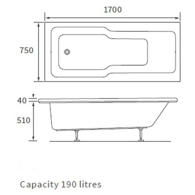 Orpington Straight 1700 x 750 Shower Bath