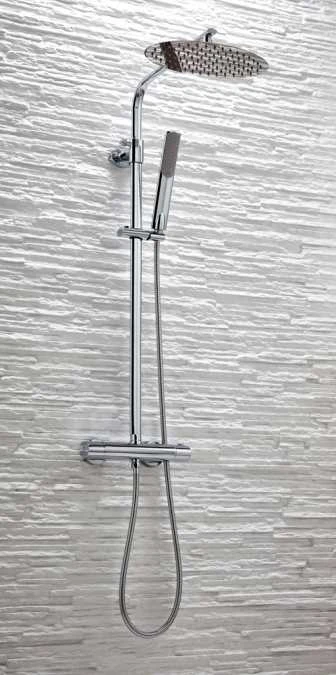 The Polo Oval Rigid Riser Shower is a dual head exposed bar mixer shower with an adjustable height ultra slim metal, not plastic, drench head and adjustable slinding hand set.