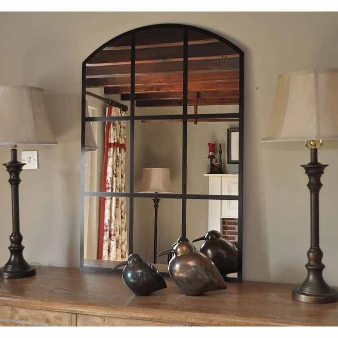 This Roman Black Grid Arched Mirror adds a bold industrial style window mirror style mirror to your room. Roman Black Grid Mirrors will make a statement in any room not just your bathroom.