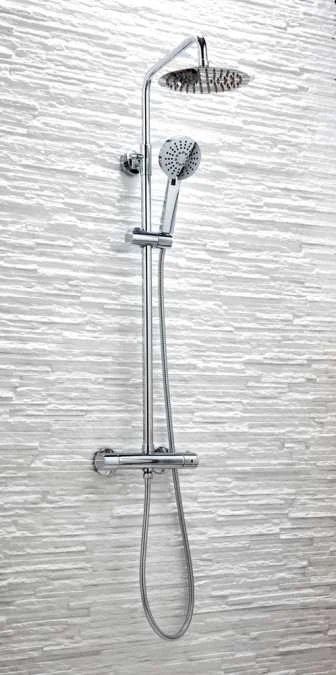 The Serena Formally know as Kate Round Rigid Riser Shower is a duel head exposed bar mixer shower with an adjustable height ultra slim metal, not plastic, drench head and adjustable slinding hand set.