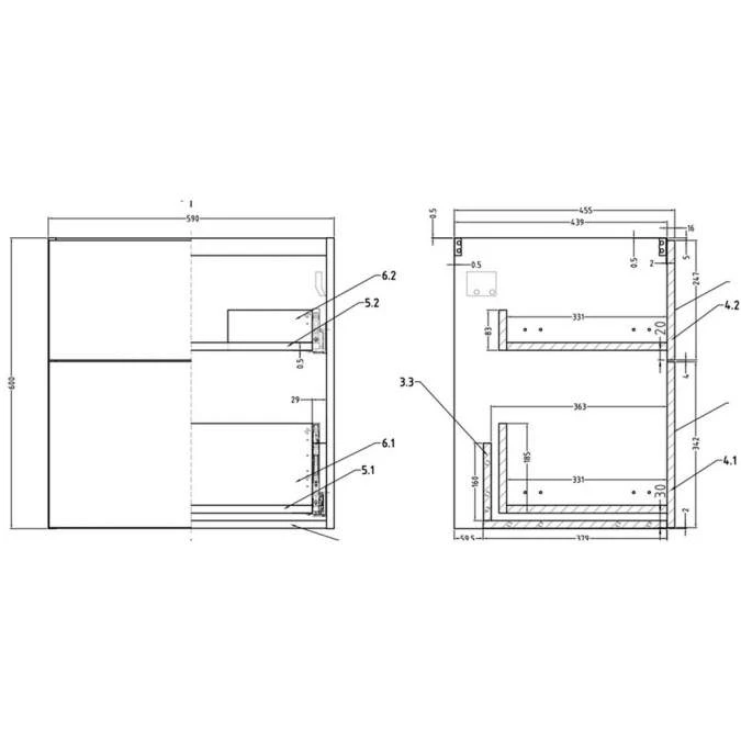 - Materials: MDP sides & back, vinyl wrapped MDF doors, HDF drawer bases