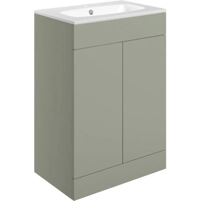 Shetland 615mm Floor Standing 2 Door Basin Unit & Basin – Matt Olive Green