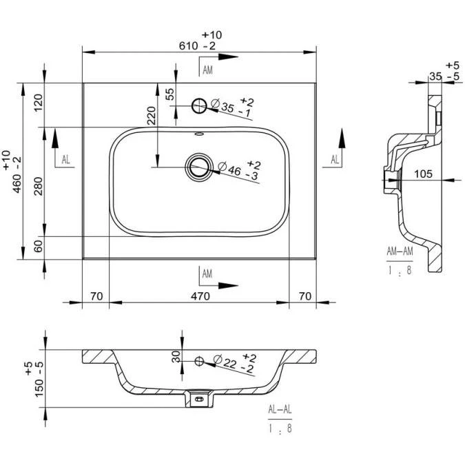 - Includes ceramic 1 tap hole basin