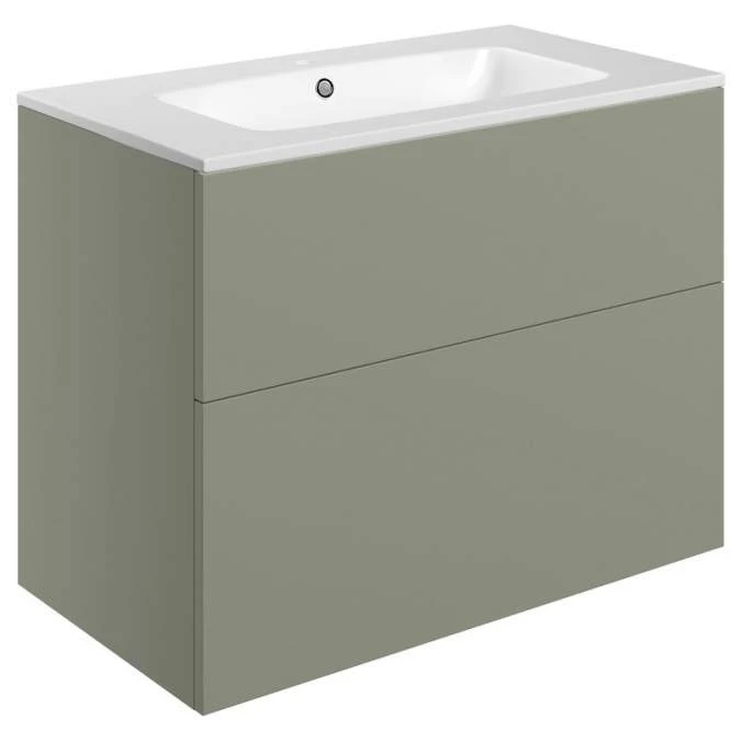 Shetland 815mm Wall Hung 2 Drawer Basin Unit & Basin – Matt Olive Green