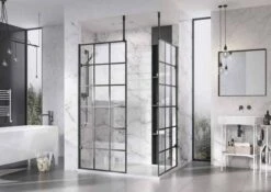 Roman Liberty 957mm Matt Black Wetroom Panel With Clear Glass Corner