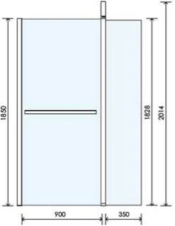 Abacus Walk In Shower Screen 900mm With Chrome Hinged Return 350mm