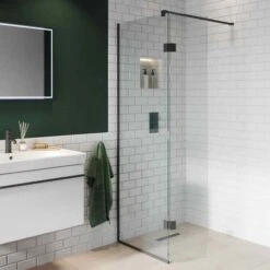 Abacus Walk In Shower Screen 700mm With Matt Black Hinged Return 350mm