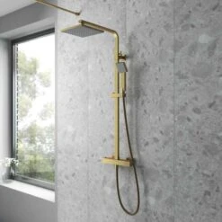 Nuie Square Thermostatic Bar Shower Kit – Brushed Brass -JTY886