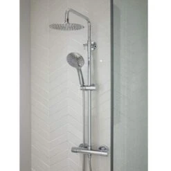 Vema Thermostatic Shower Column With Fixed Head & Riser – Stainless Steel