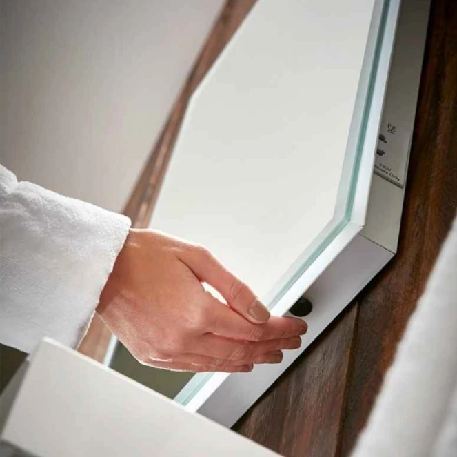 Rubberduck Bathroom’s LED Bluetooth Mirror with built-in shaver socket and Demister Pad makes shaving easier than it’s ever been. Built-in Bluetooth speakers let you listen to your favorite music without bringing your music player into the bathroom. Having an infrared on/off switch makes turning this stunning LED Bluetooth Mirror easier than ever.