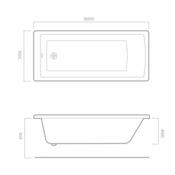 Lorenzo 1600 x 700mm Single ended premium reinforced acrylic rectangular bath by Tissino.