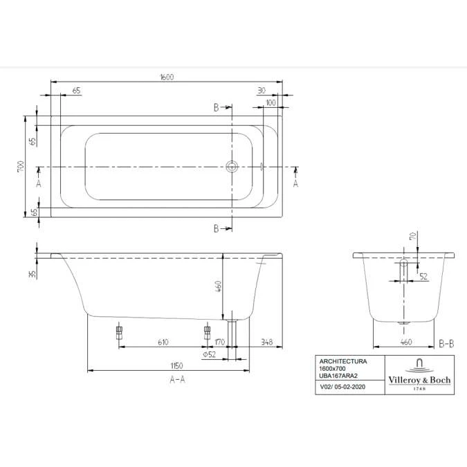 Villeroy & Boch Architectura 1600 x 700mm Single Ended Bath.