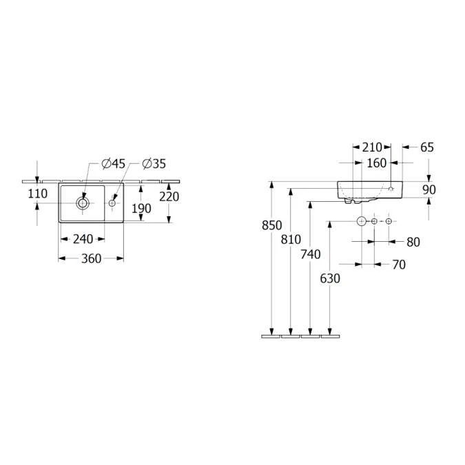 Villeroy & Boch Avento Hand Wash Basin, 360mm, White Alpin, Without Overflow Left Hand –Â 43003L01