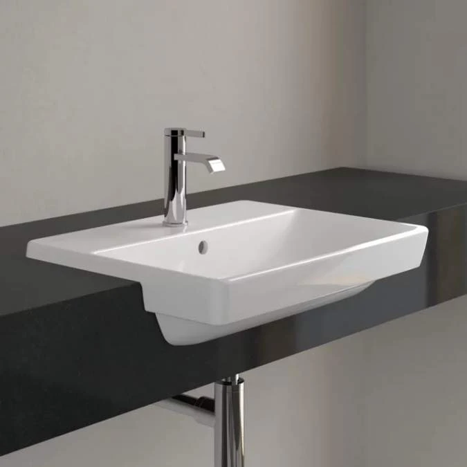 Villeroy & Boch Avento Semi-Recessed Washbasin, 550mm, White Alpin, With Overflow –Â 4A065501