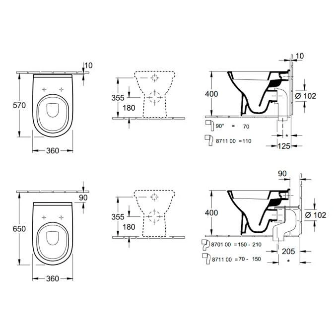 Villeroy & Boch O.novo Washdown Rimless Floor Standing Back To Wall Toilet – 56571001