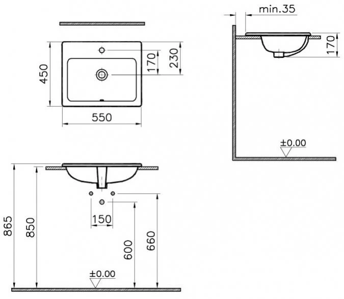 VitrA Countertop Fully Recessed Inset S20 Basin 550 x 450mm