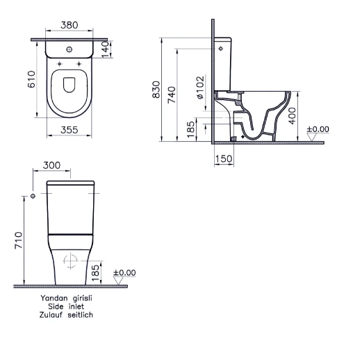 The VitrA Zentrum 4-piece bathroom suite comprises: